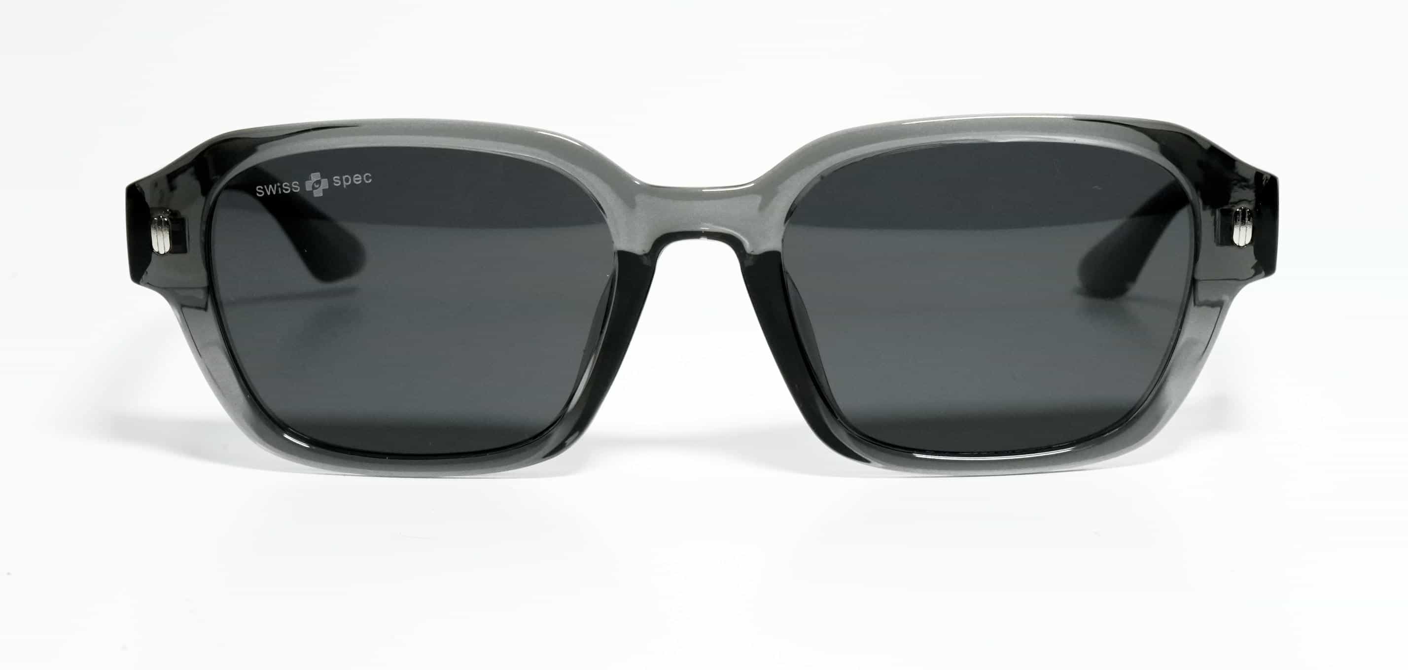 Sleek sunglasses featuring a Crystal Gray TR sheet front and temples paired with Black polarized lenses for sharp vision and everyday comfort.