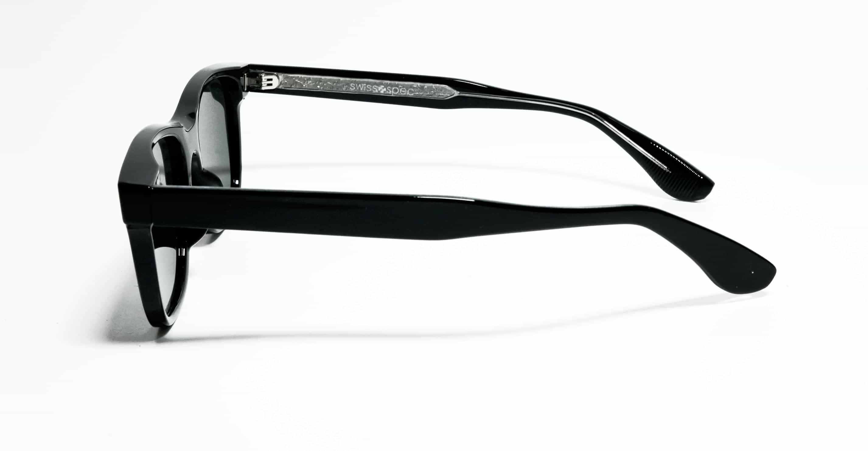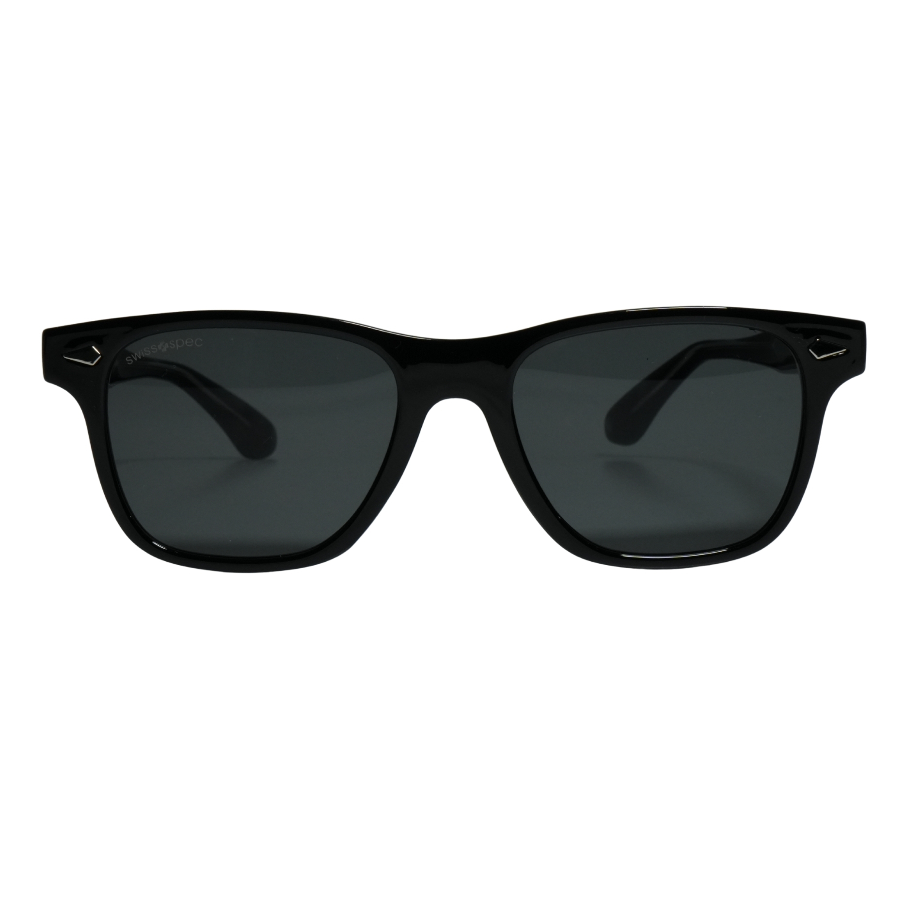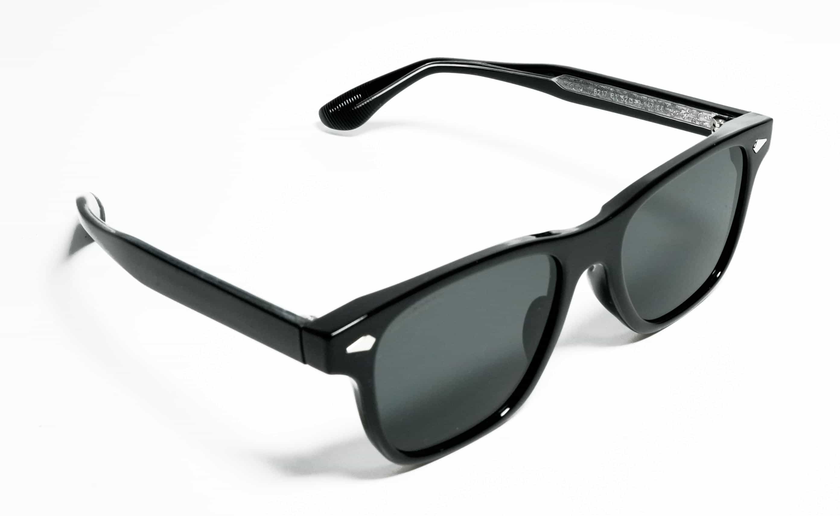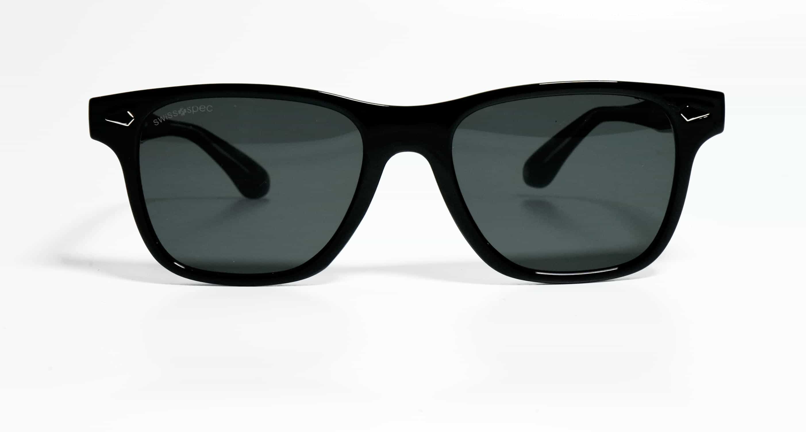 Wayfarer style Solid black acetate sheet sunglasses with matching temples and black UV lenses, delivering a sleek, premium look with reliable eye protection and all-day comfort.