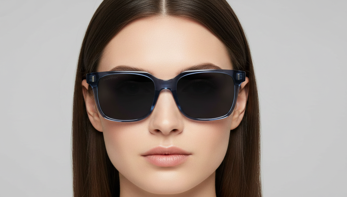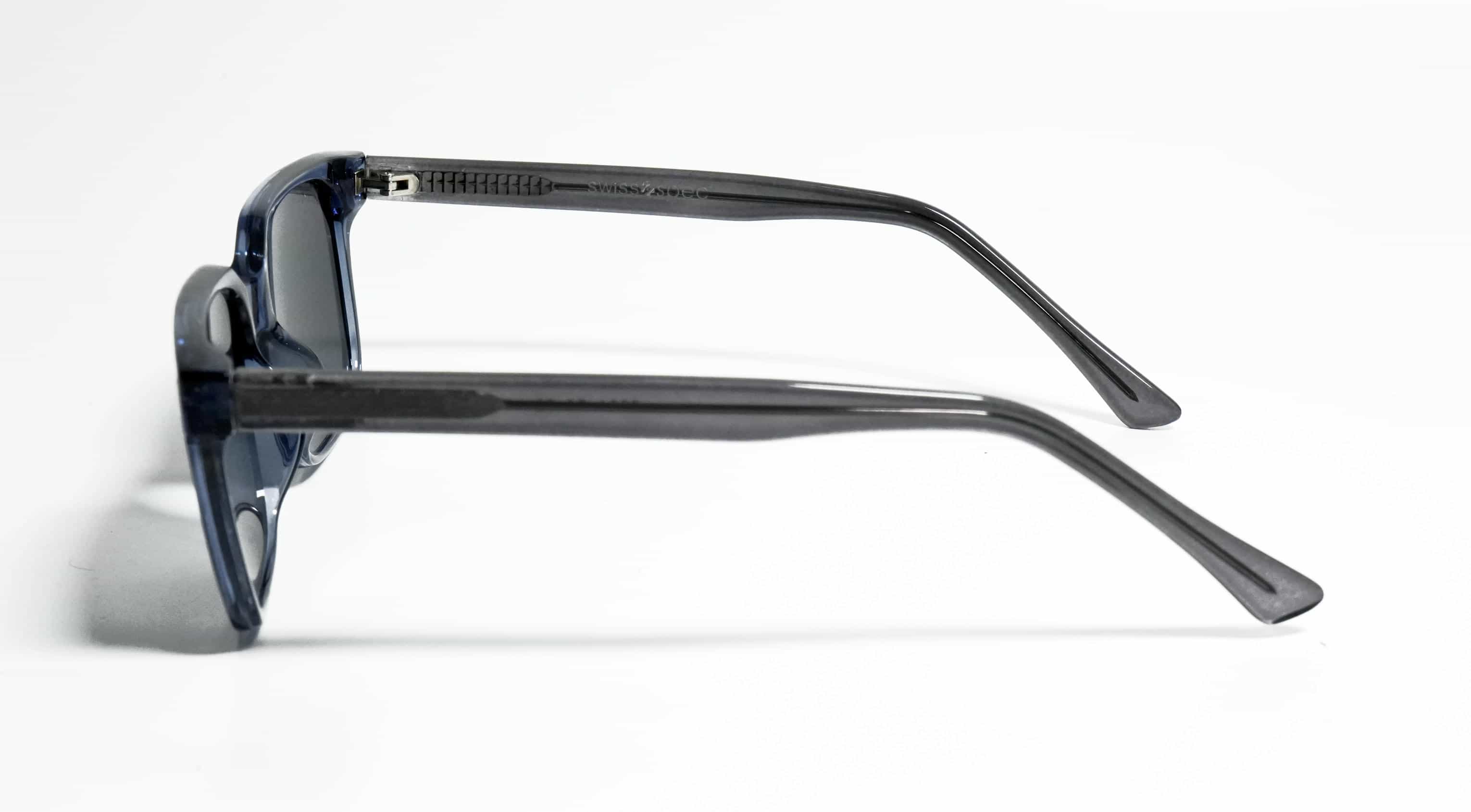 Crystal Blue acetate sheet sunglasses with Gray temples and Gray UV lenses, delivering a sleek, premium look with reliable eye protection and all-day comfort.