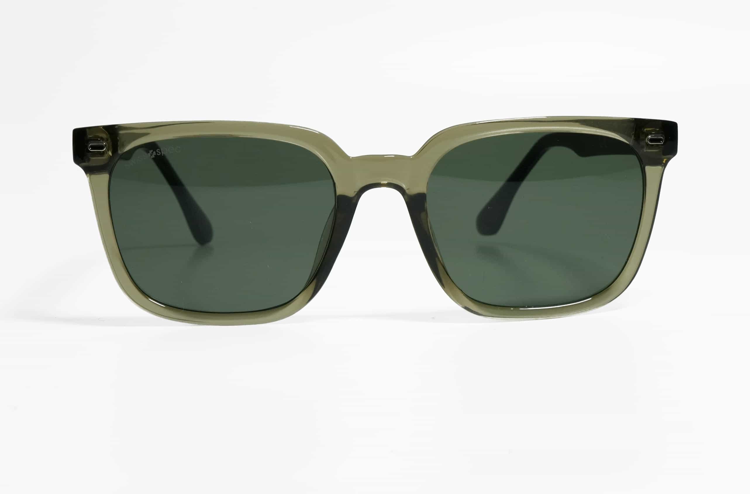 Crystal Green acetate sheet sunglasses with mix Brown color temples and Green UV lenses, delivering a sleek, premium look with reliable eye protection and all-day comfort.