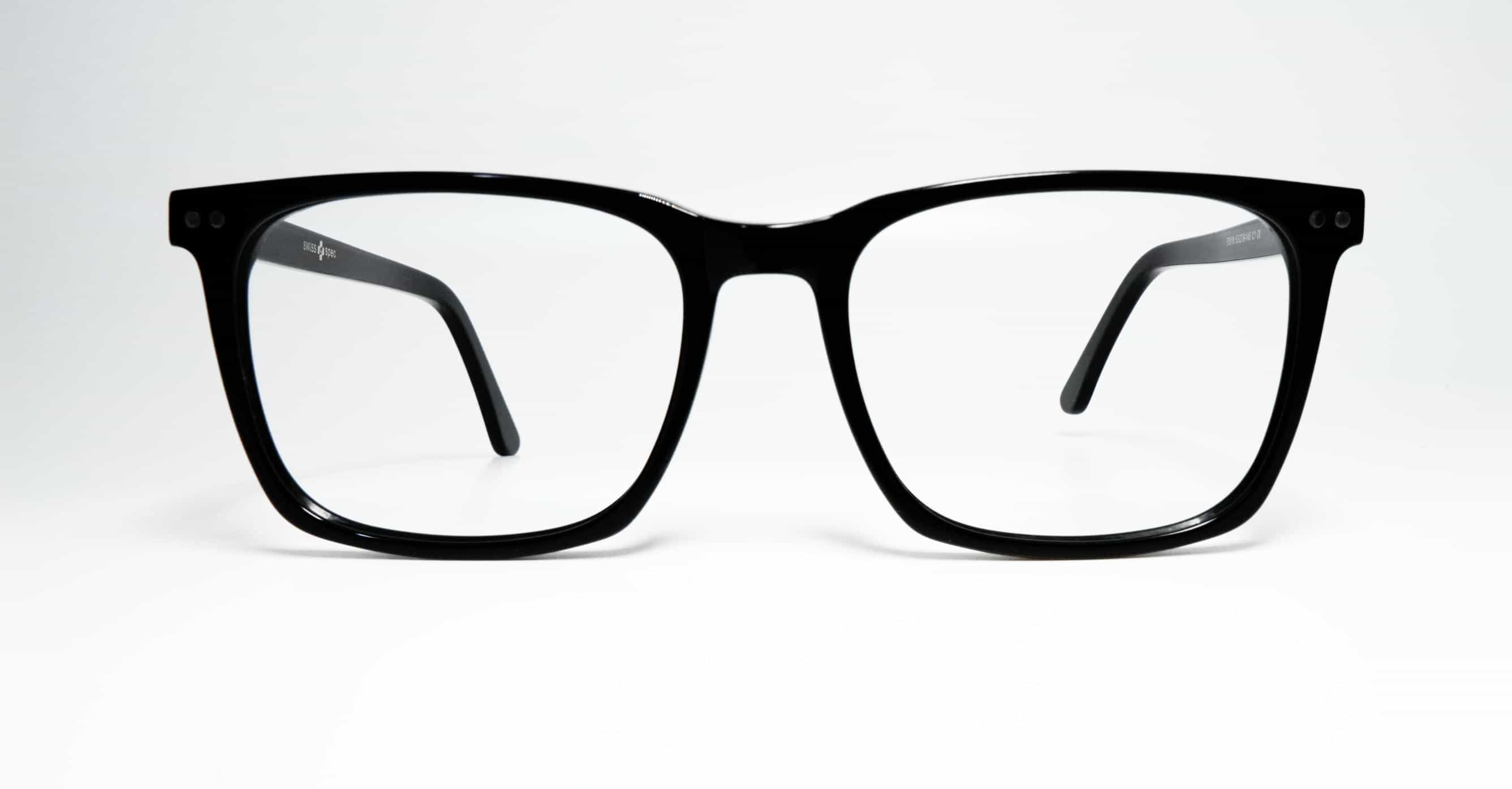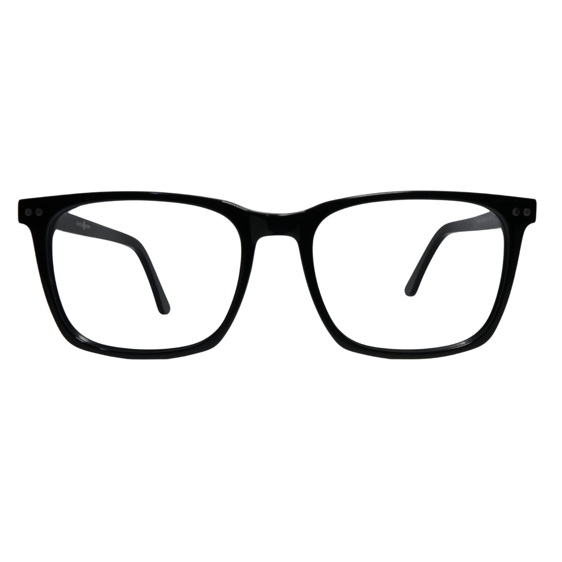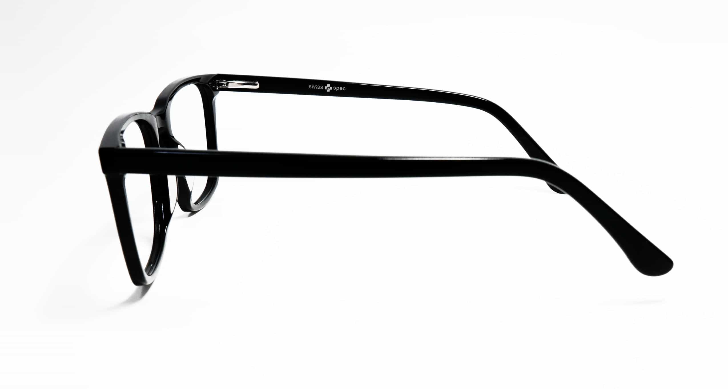 A premium acetate sheet eyewear frame featuring a solid black front and temples, offering a classic look with lightweight comfort and lasting durability.