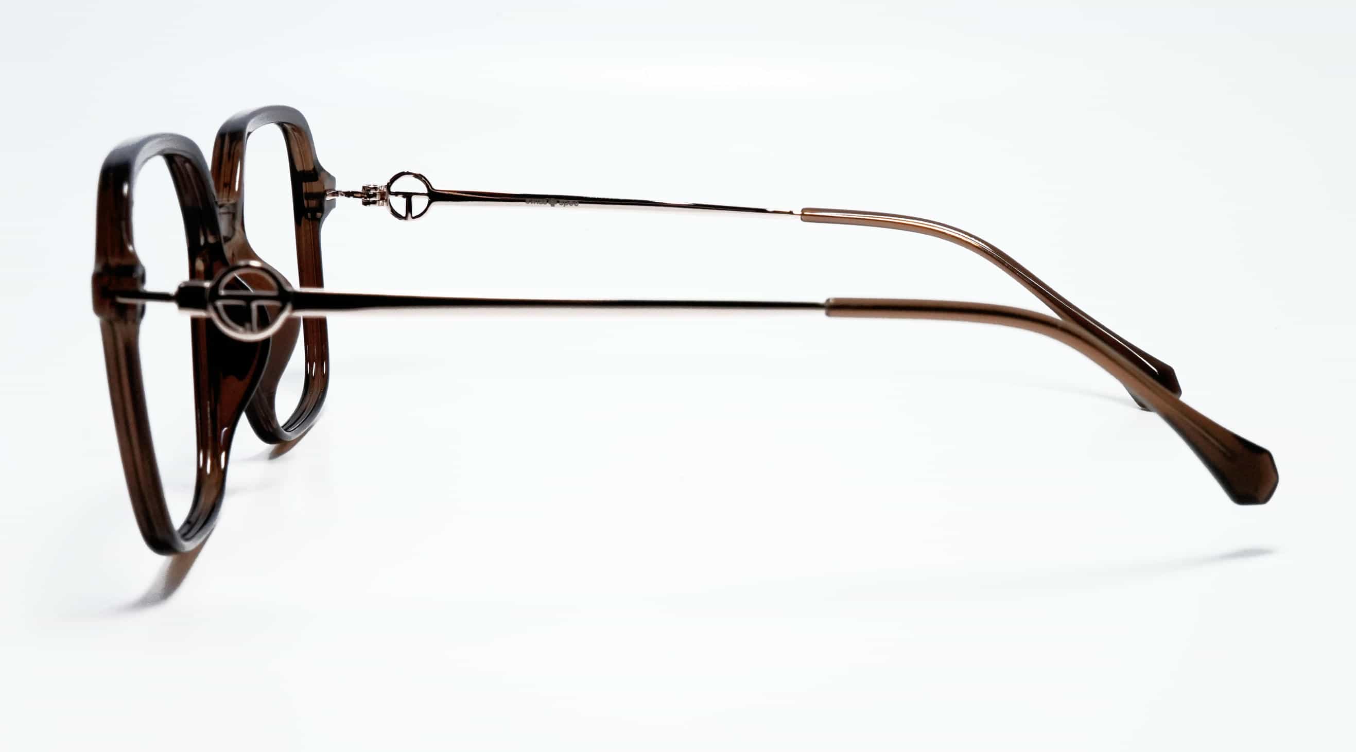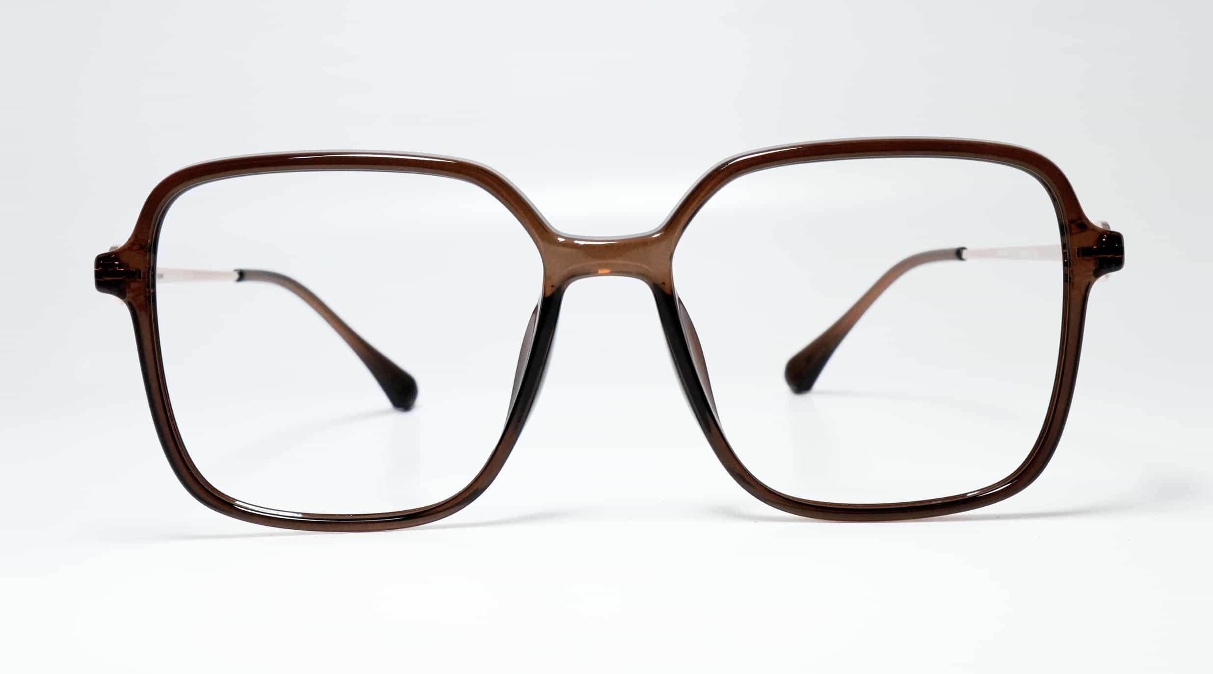 Dark Brown TR90 front paired with rose gold metal sides for a stylish, lightweight, and premium eyewear look.