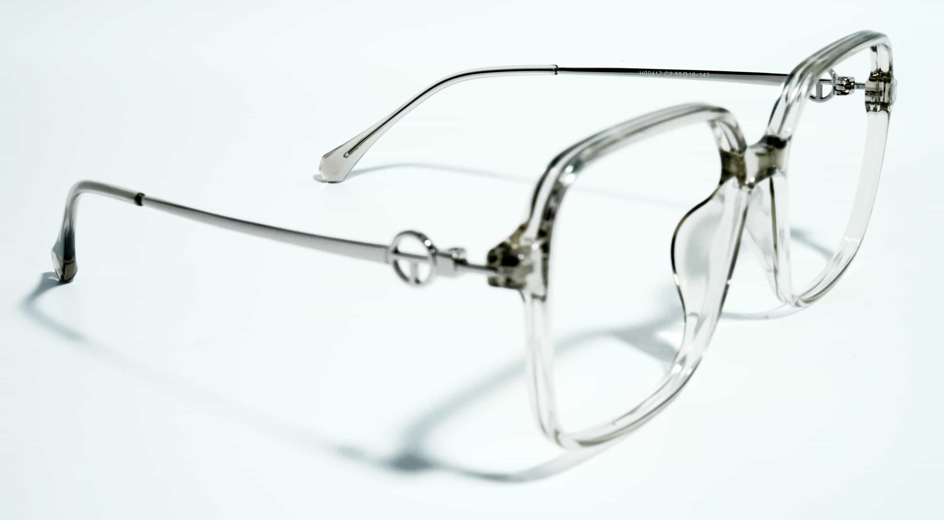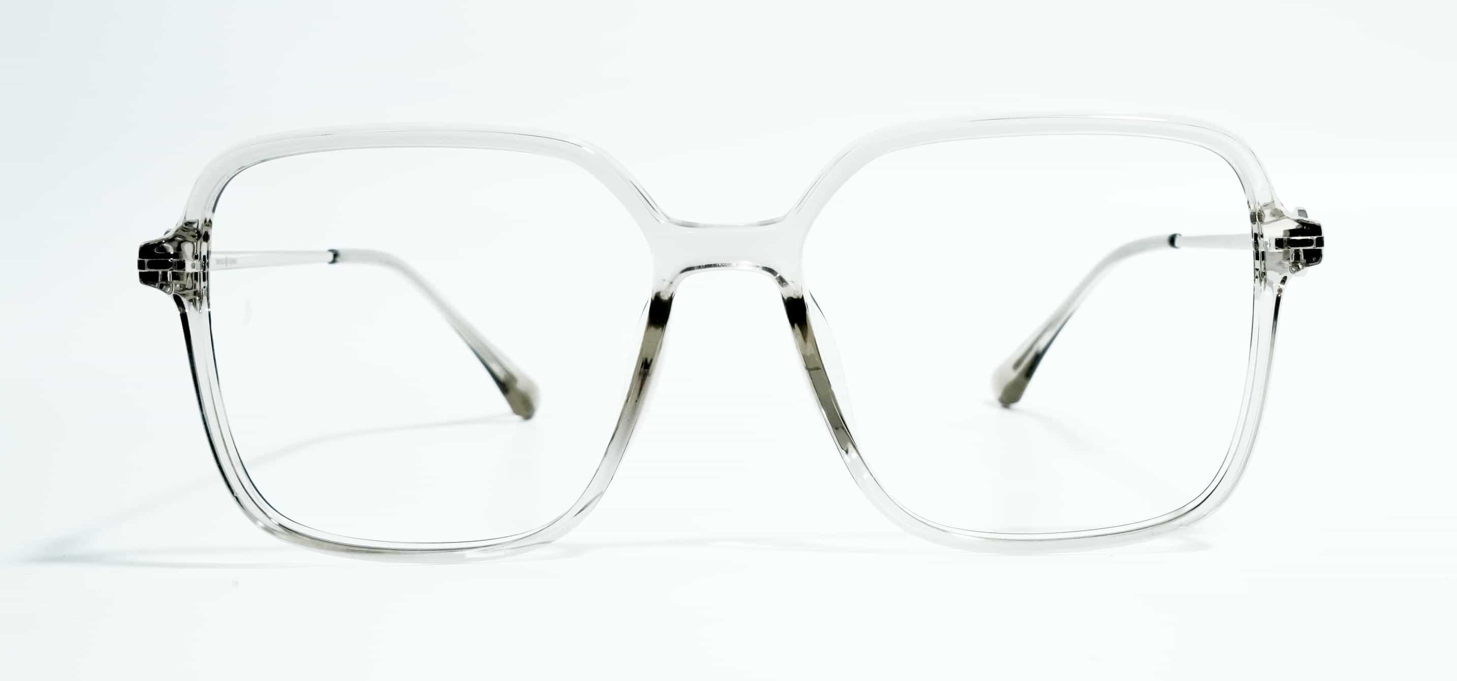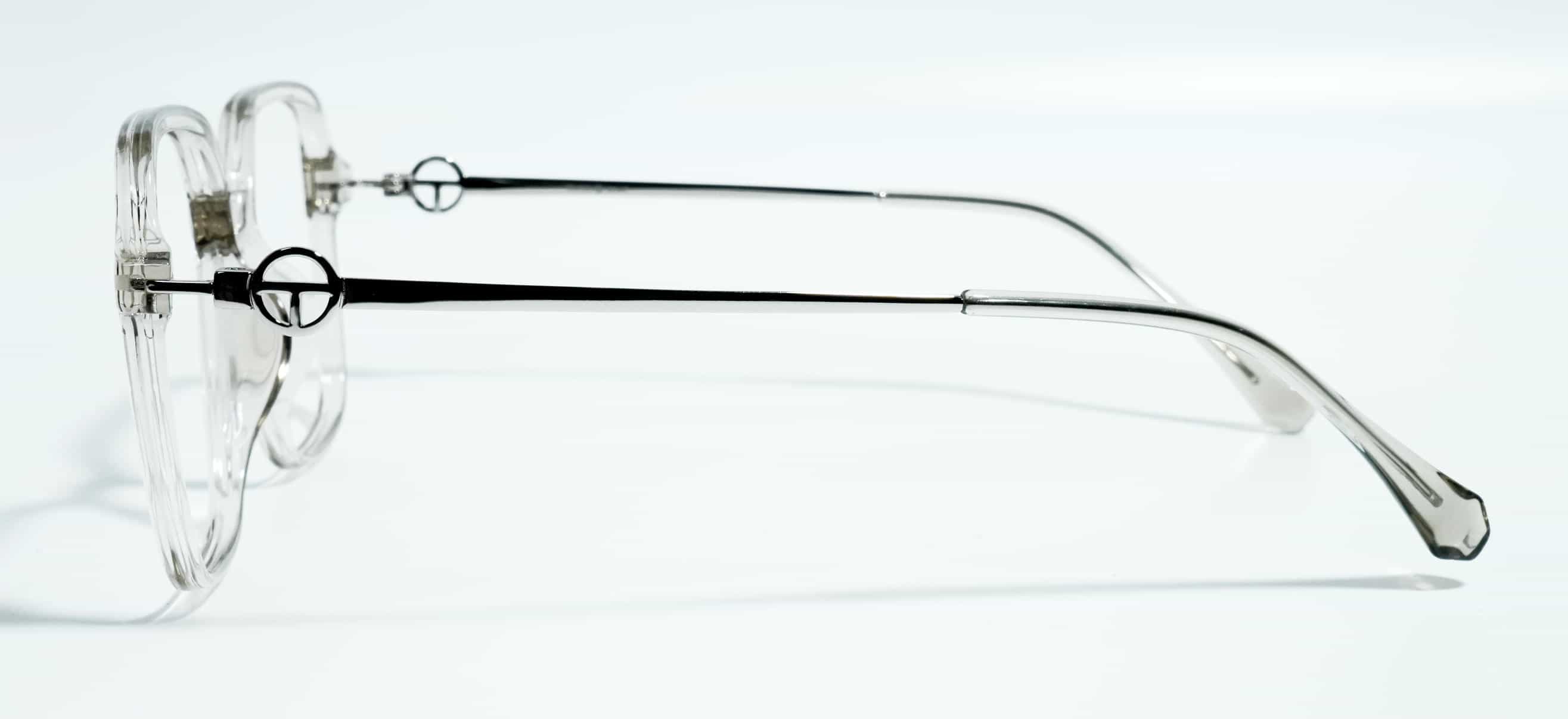 Clear transparent color TR90 front paired with silver metal sides for a stylish, lightweight, and premium eyewear look.